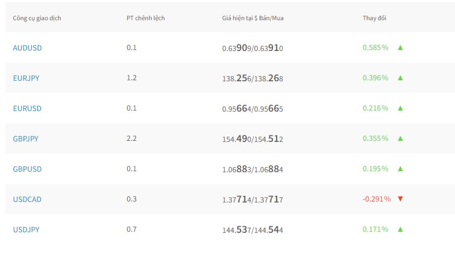 - Forex: bao gồm 60 cặp tiền tệ, bao gồm tiền tệ chính, phụ, ngoại lai. Nhà đầu tư có thể tiếp cận thị trường forex 24/5.